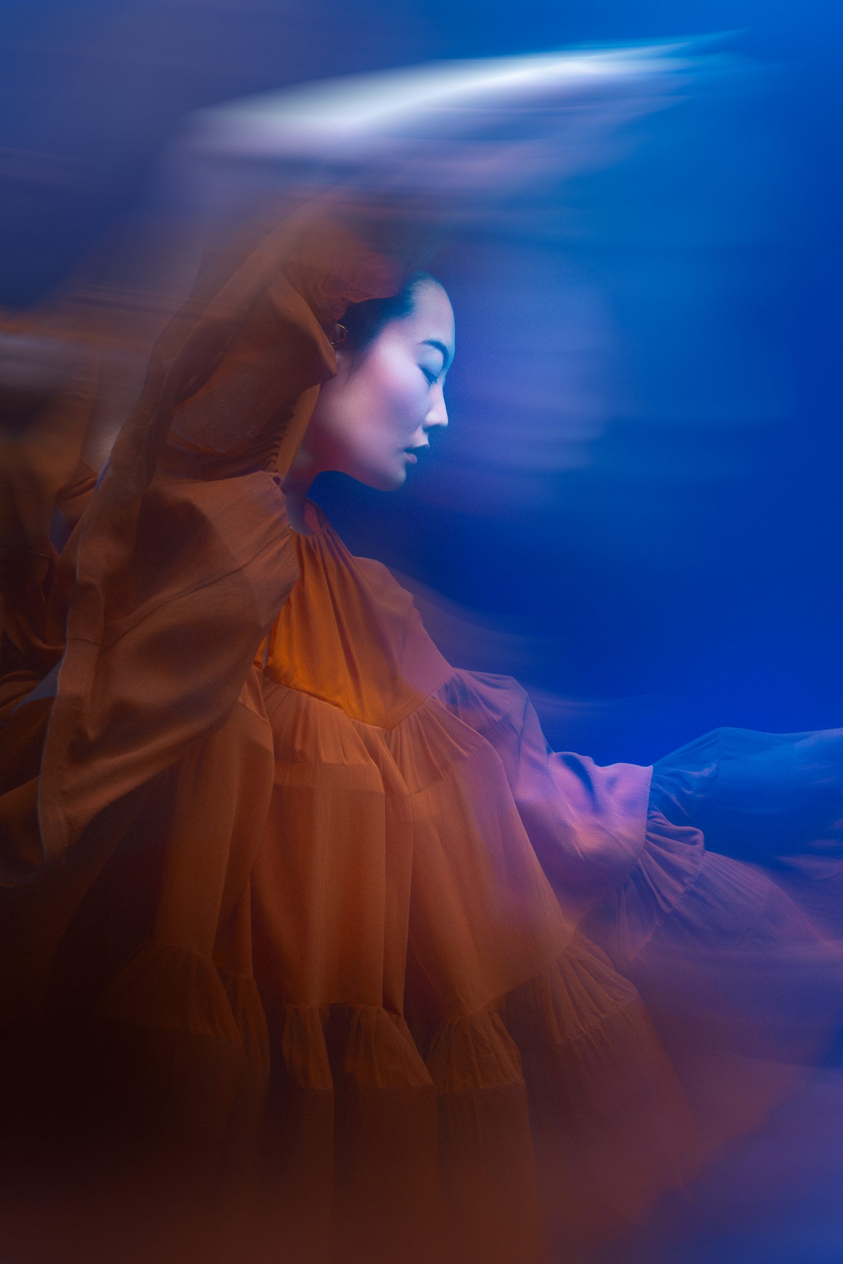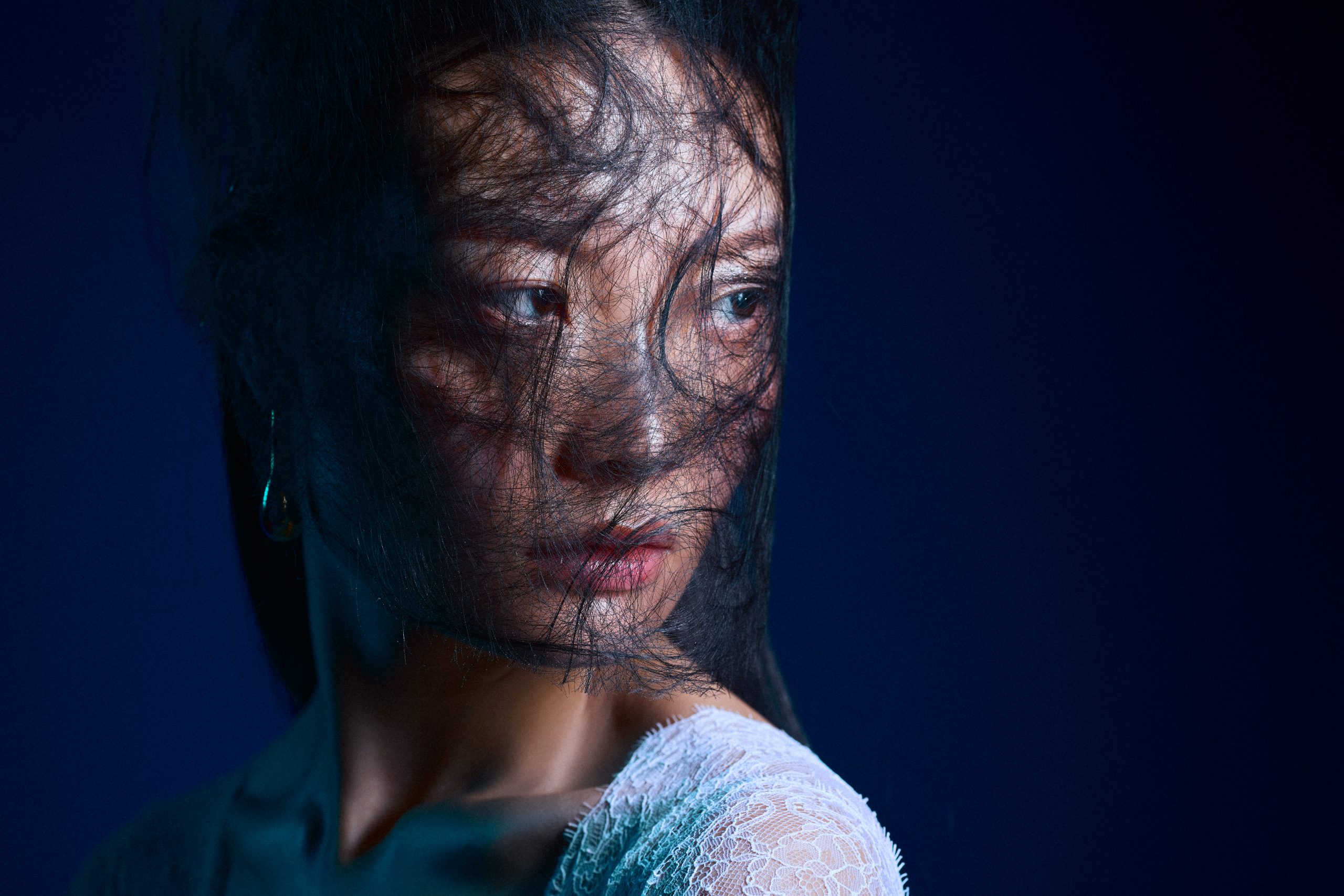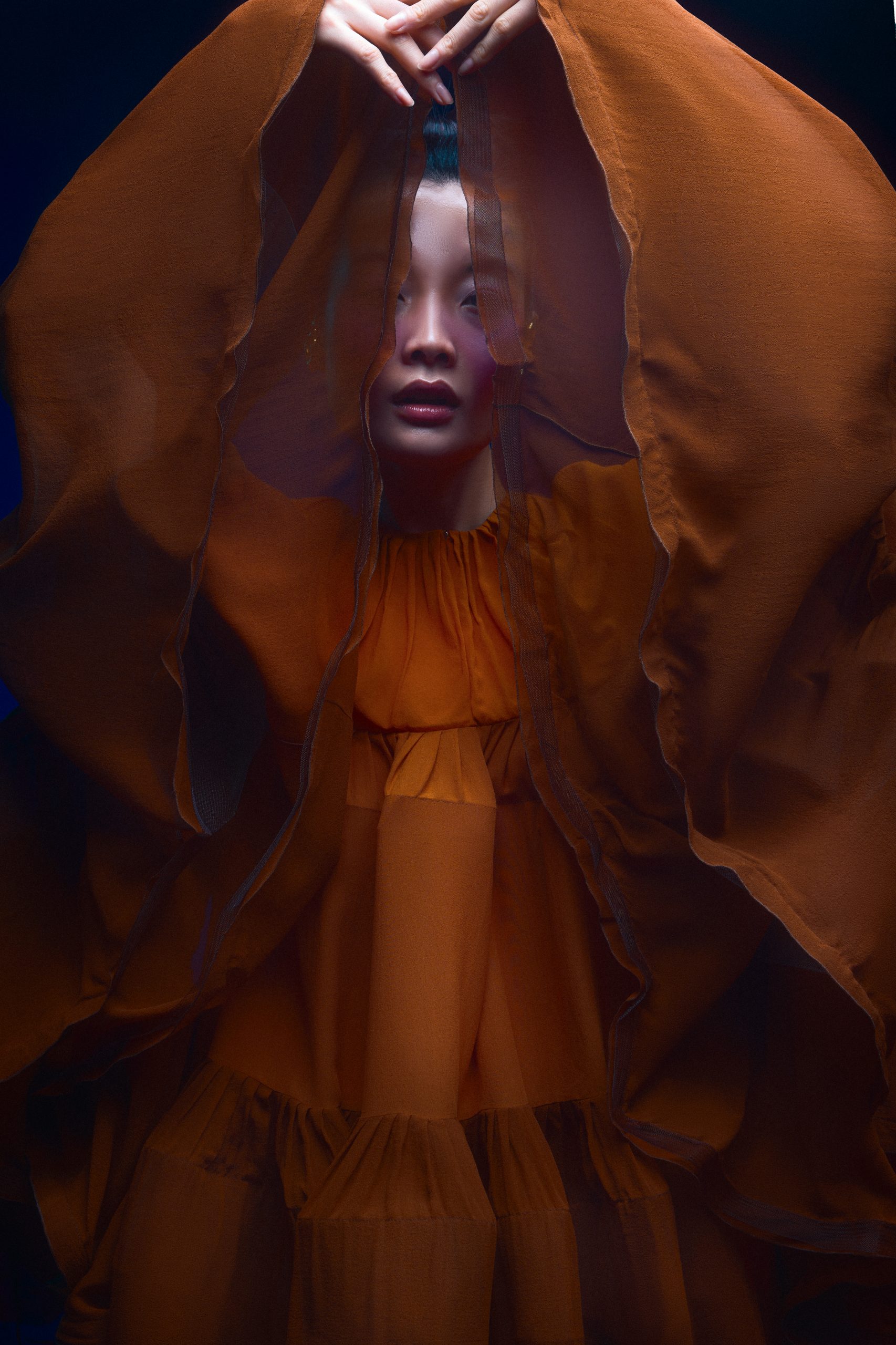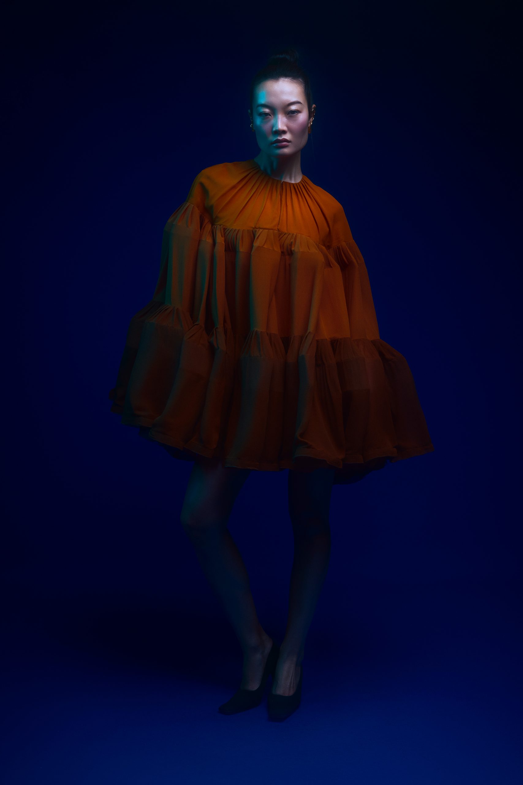 La silhouette de Chihiro s’affirme ici comme une surface d’expression brute, où la matière dicte une prise de position esthétique sous l’objectif de Kenny V. Le stylisme de Sielle, assistée de Work X Design, sculpte le corps à travers des pièces architecturales de Gaby Charbachy et Juozas Couture Paris, faisant dialoguer des blancs structurels et des dentelles délicates avec des volumes beige rosé ou marron enveloppants. Sublimées par les bijoux Mam, ces créations oscillent entre douceur sculpturale et présence théâtrale, portées par le maquillage graphique de Tama Reese et les coiffures dramatiques de Jérôme Fendt. Les contrastes chromatiques profonds et les jeux de lumière construisent une narration visuelle cinématographique où la haute couture et l’attitude se rencontrent dans un équilibre précis entre force et subtilité.